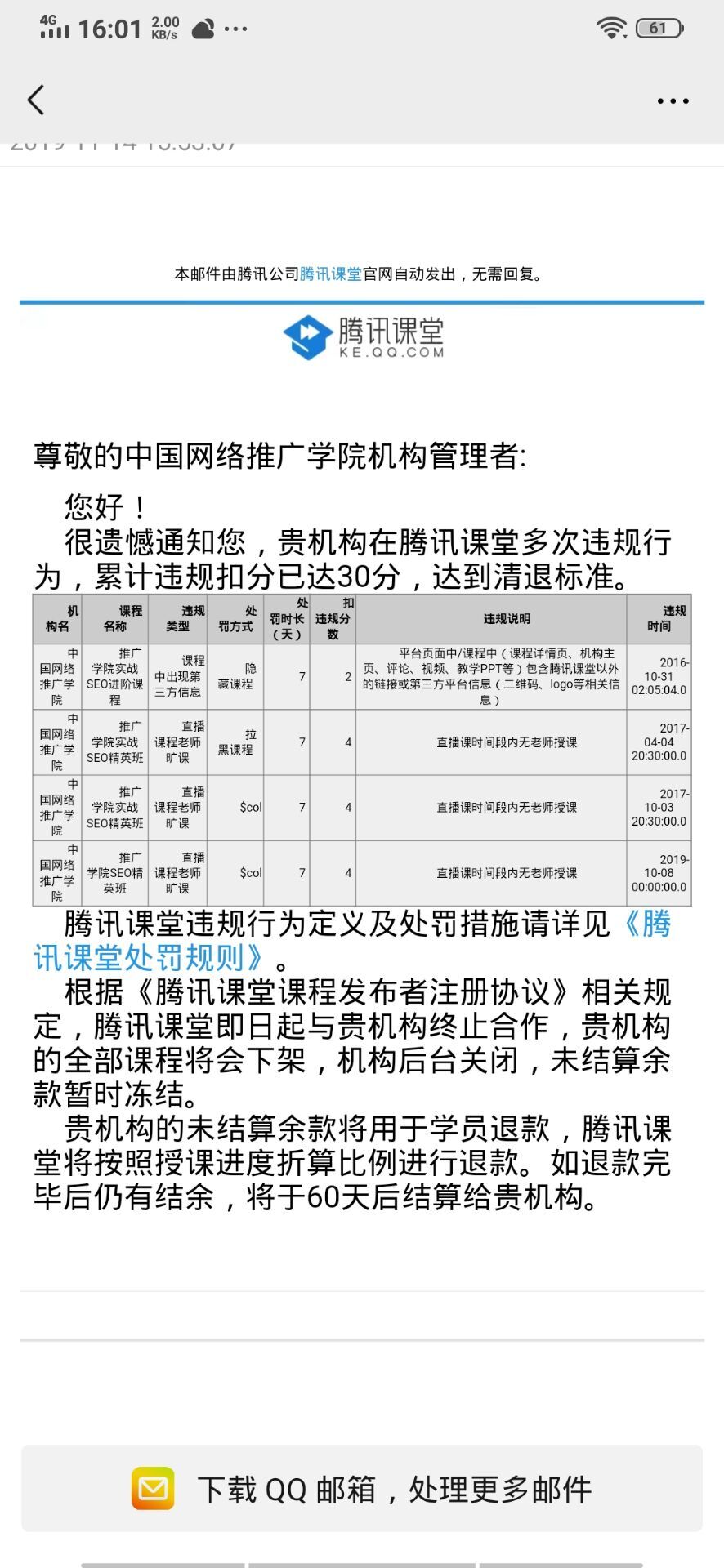 第一:腾讯课堂规定每年累计超过30分,会被清退。但是今年,只违规4分,截图如下: