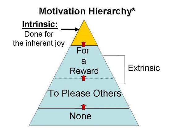 图2 人类的动机可分为外部动机和内部动机。升职、获奖啊等属于外部动机,满足感,自豪感,成就感则属于更高层面的内部动机。